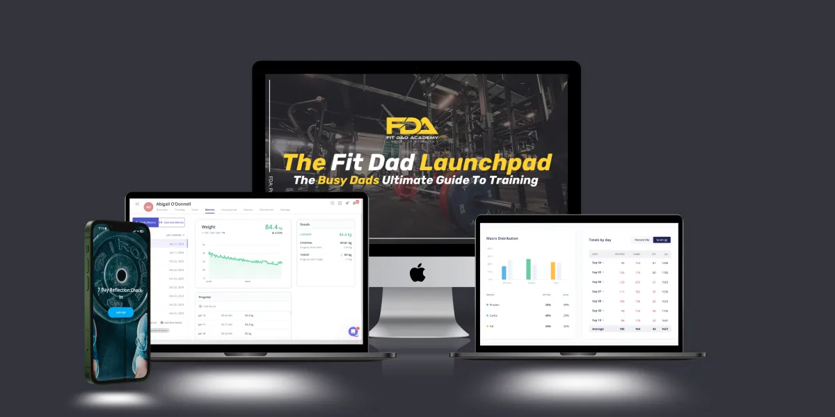 A: The Fit Dad Launchpad is specially designed for ANYONE that wants to be consistent with their training, and build a training routine that fits into their lifestyle, not the the other way round. It's for the busy, overtired dad to help them finally burn fat, build muscle, get strong, build a body fit for the purpose of being a dad, and to finally feel 100% confident in their clothes again, without spending hours in the gym and still enjoying a social life.